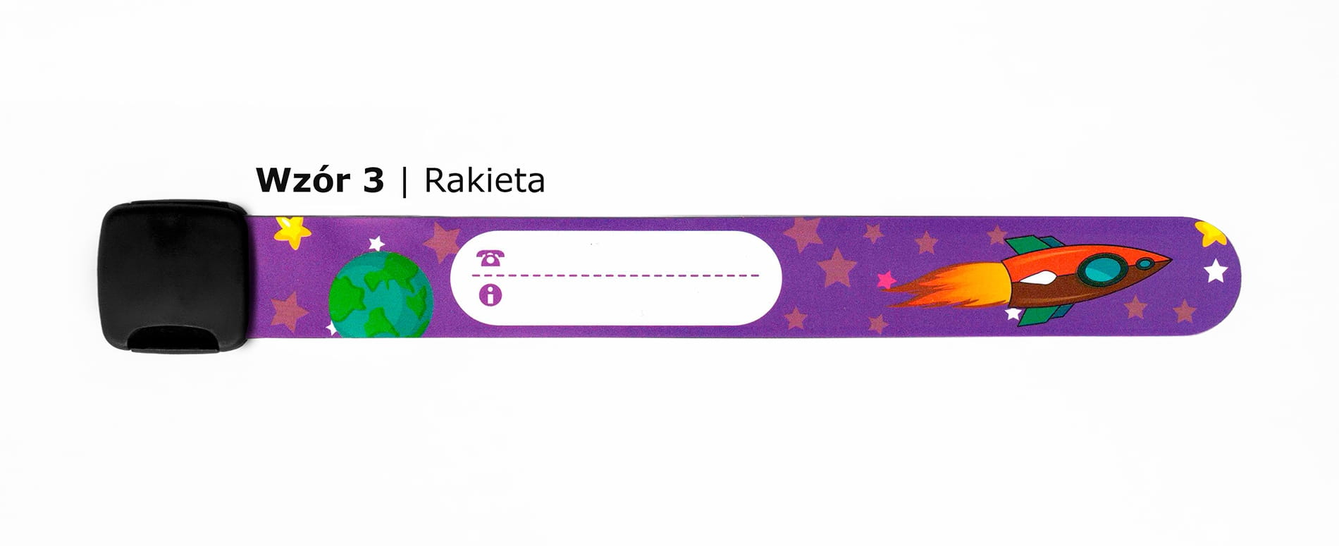 To wygodny i praktyczny produkt, który pomaga zadbać o bezpieczeństwo dziecka podczas spacerów, wyjazdów, wycieczek szkolnych, kolonii, półkolonii, festynów, eventów rodzinnych oraz pobytu w miejscach publicznych. Dzięki kompaktowemu rozmiarowi 195 x 21 mm opaska dobrze sprawdza się jako forma szybkiej identyfikacji dziecka.